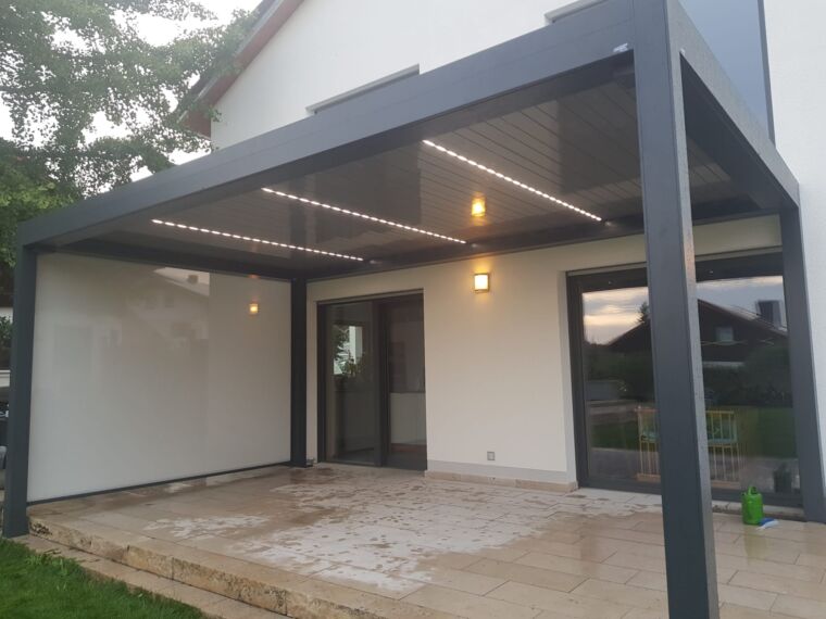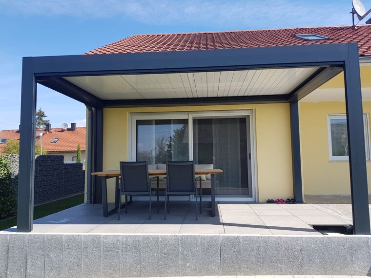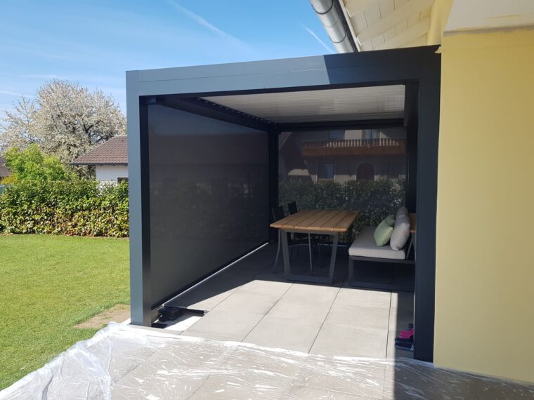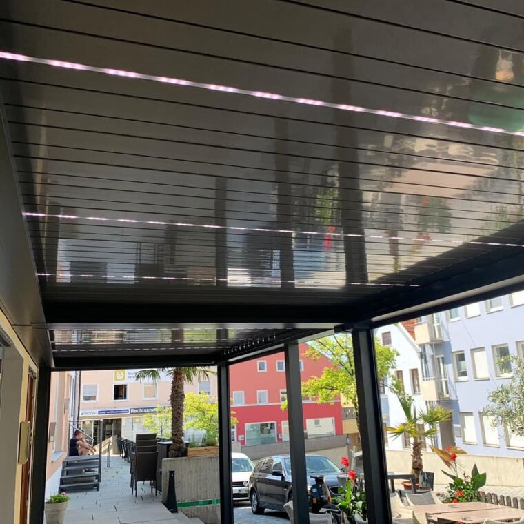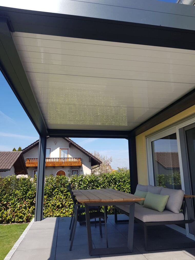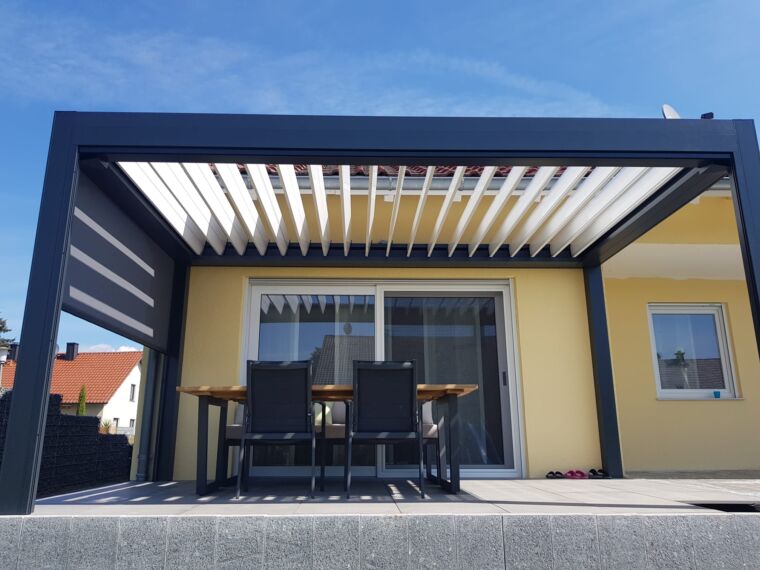 Zudem schützen die Lamellen vor neugierigen Blicken, wenn Sie z.B. einen Whirlpool/Pool darunter aufstellen oder einfach ungestört sein wollen. Sie können die Sonne auch selber „lenken“ - das eignet sich auch wunderbar, wenn Sie im Homeoffice arbeiten und Ihre Arbeitszeit im Sommer nach draußen verlegen.