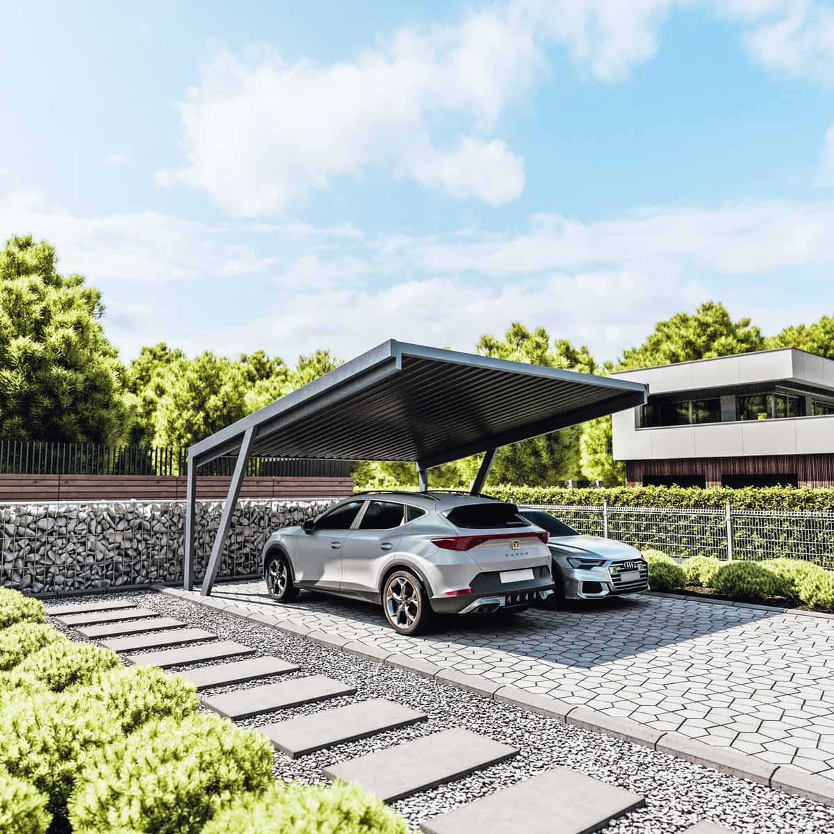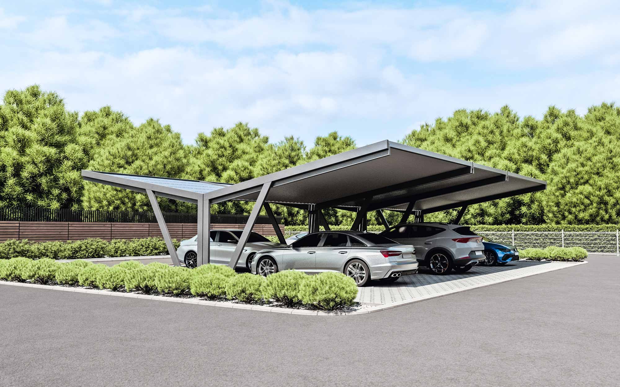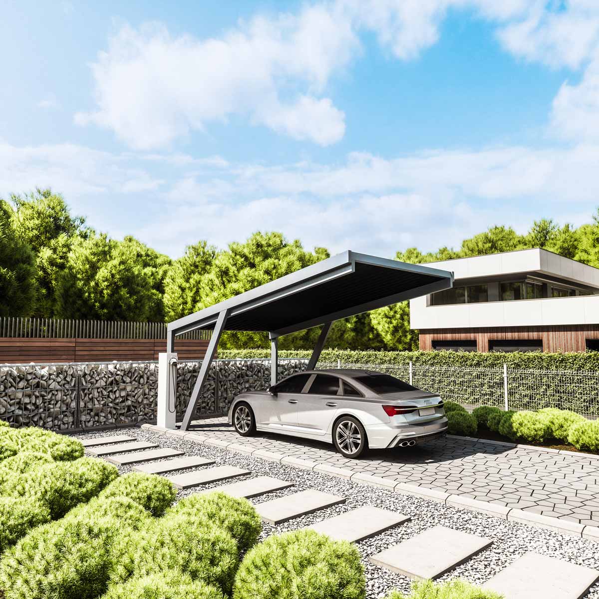Unsere Solar-Carports bieten individuelle Gestaltungsmöglichkeiten mit verschiedenen Farben und hochwertigem Aluminium. Die Dachneigung können Sie dabei nach Belieben festlegen, sodass die Sonnenausbeute optimal ist.